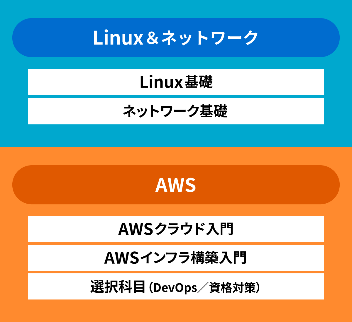 インフラの基礎の習得から実機演習までを含むコースです。