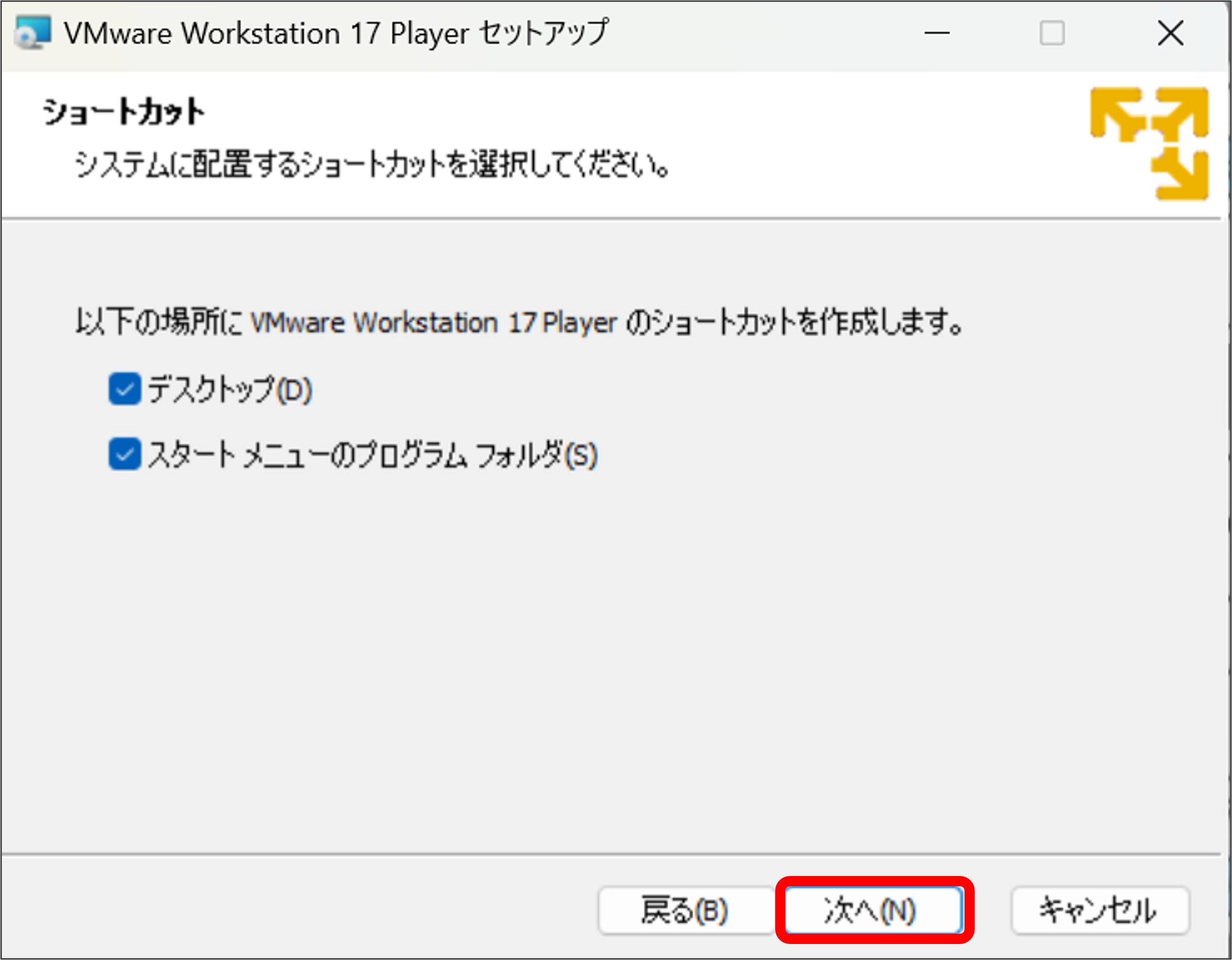 ショートカットを作成する場合、そのまま「次へ」ボタンをクリックします。