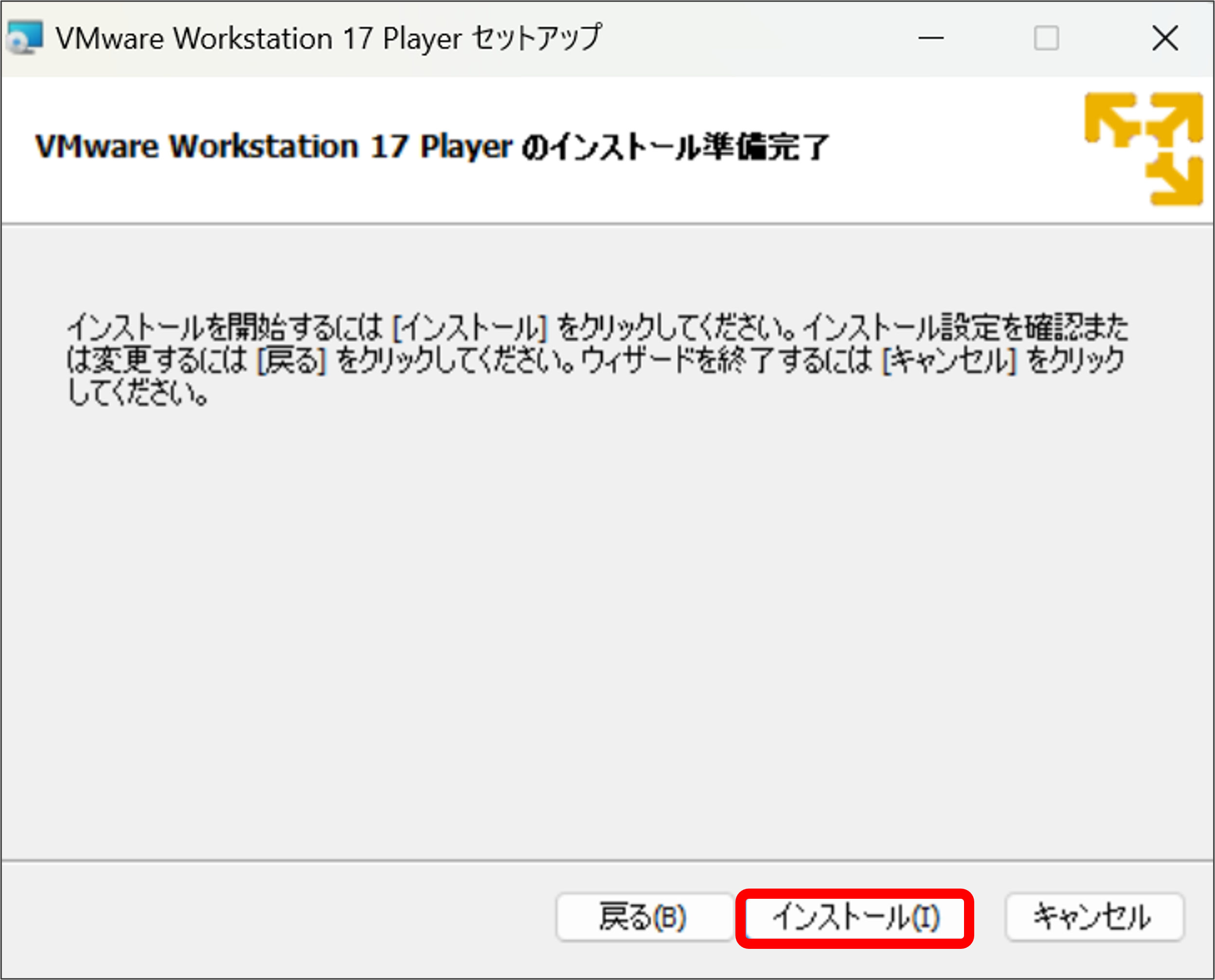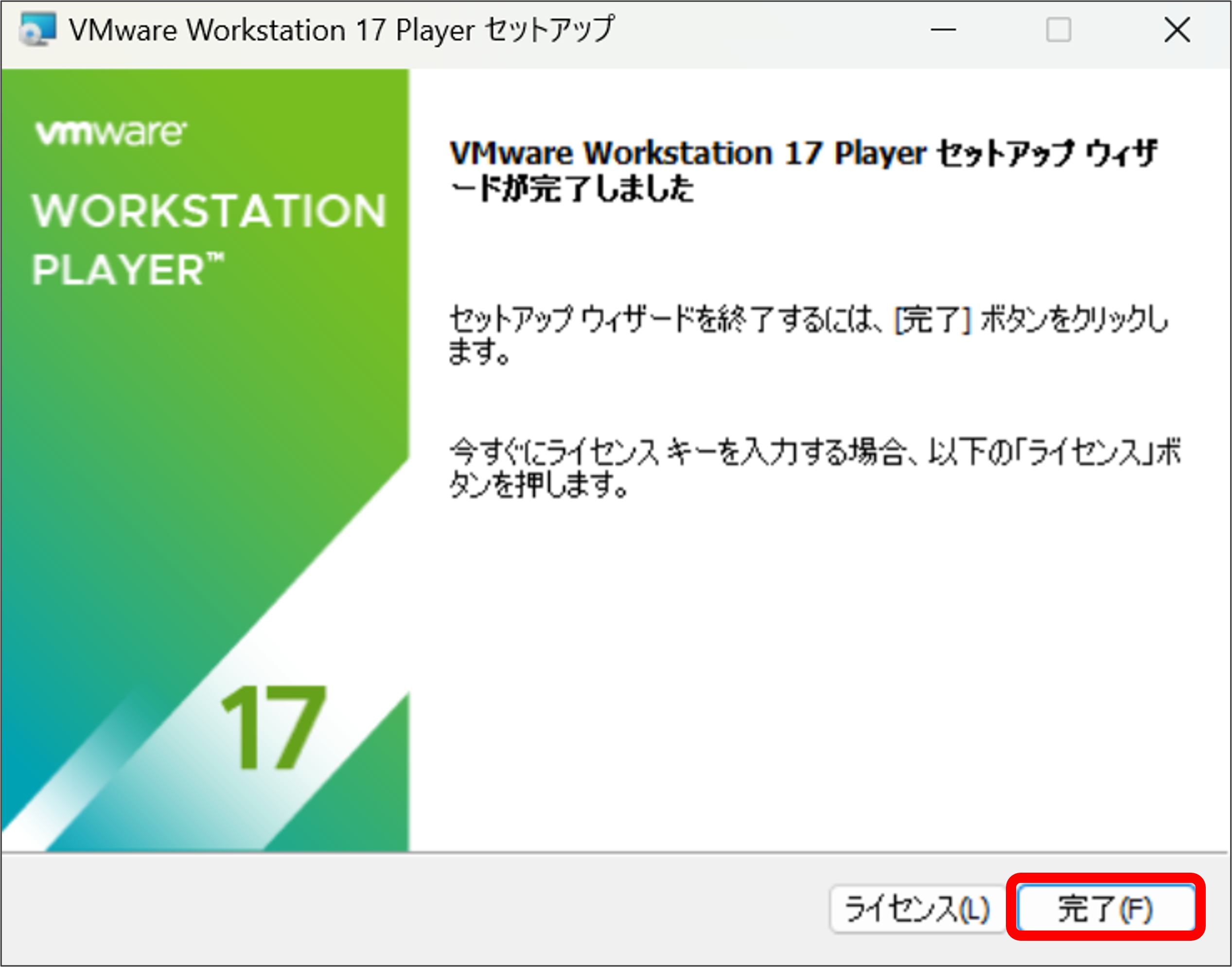 これからご案内する手順で、まずはVMware Workstation Playerをインストールしていきます。