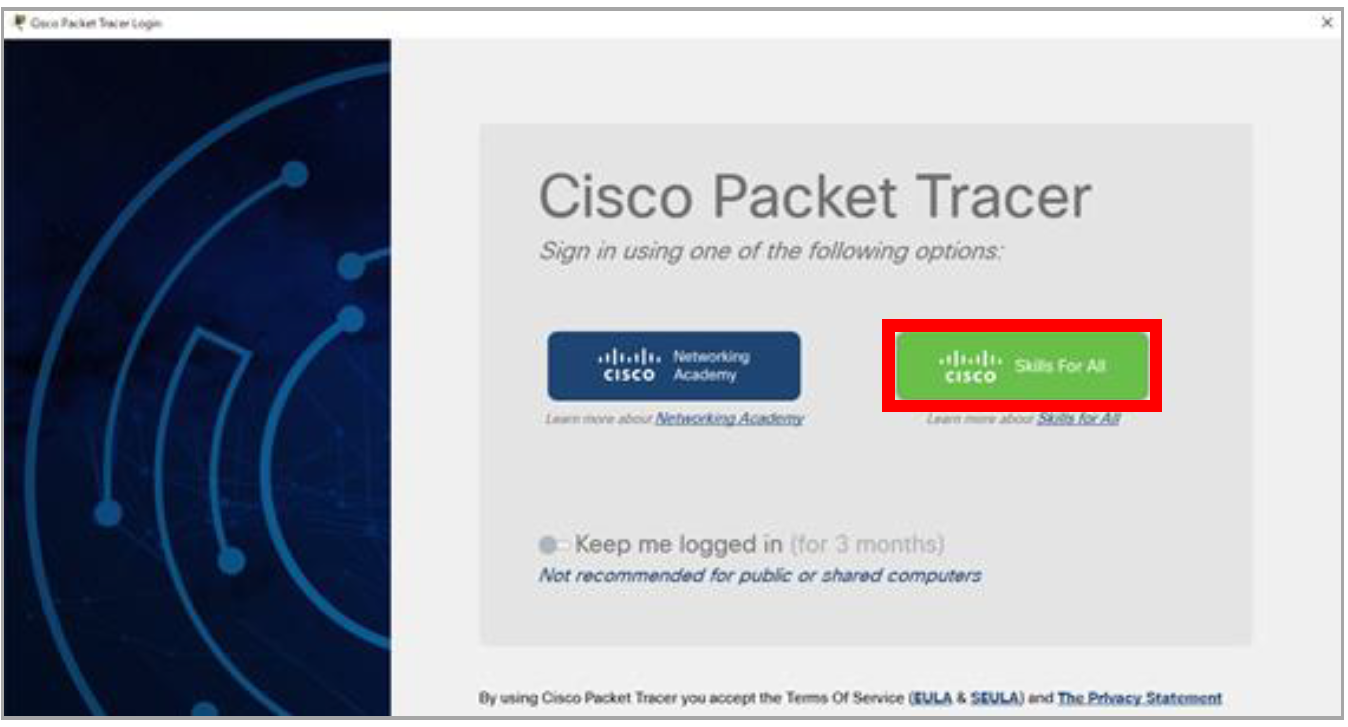 ※「You have successfully logged in to Cisco Packet Tracer. You may close this tab.」というメッセージが表示されているWebブラウザは、閉じてしまって構いません。