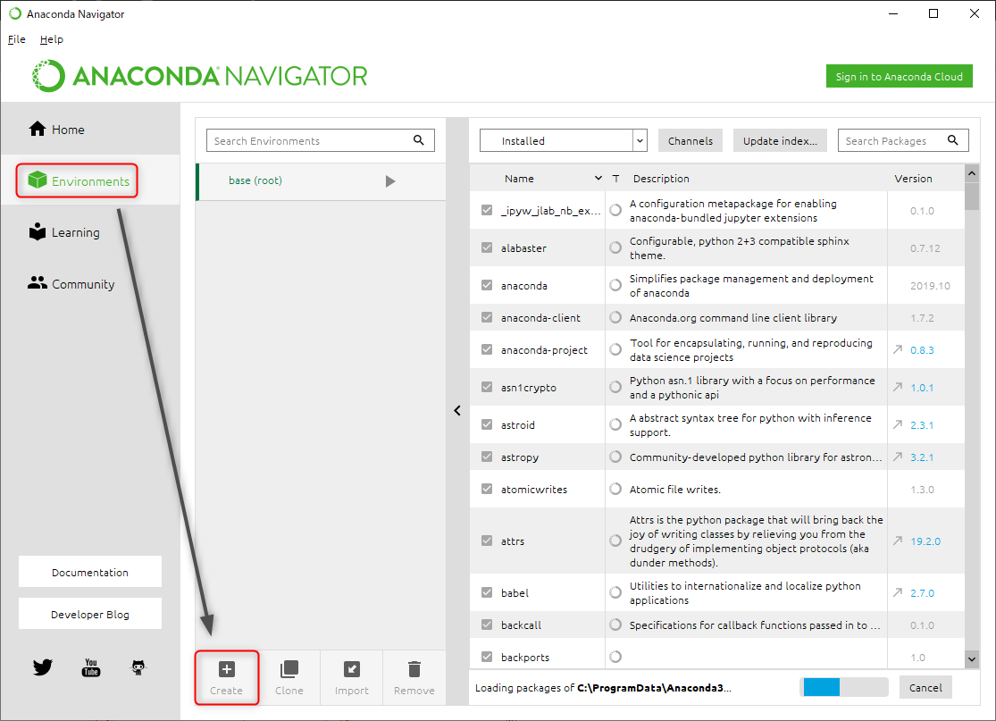 Anaconda Navigatorが起動し、このような画面が表示された場合は、