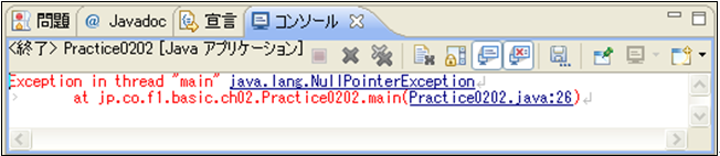 [java] package jp.co.f1.basic.ch02exercise; class Person02 { String name; // 名前 int age; // 年齢 // フィールド変数の値を画面にメッセージとして出力する public void showPerson() { System.out.println(“この人の名前は” + this.name + “で、年齢は” + this.age + “歳です。”); } } public class Practice0201 { public static void main(String[] args) { // Person02オブジェクトを2つ作成 Person02 person1 = new Person02(); Person02 person2 = new Person02(); // 個々のオブジェクトに値を設定 person1.name = “神田太郎”; person1.age = 30; person2.name = “神田花子”; person2.age = 20; // メソッドにアクセスし個々の結果を表示する person1.showPerson(); person2.showPerson(); } } [/java]