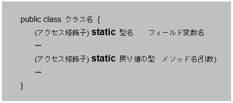 クラス自身に関連づけられているフィールドをクラス変数、メソッドをクラスメソッドといいこの2つを総称してクラスメンバと呼びます。