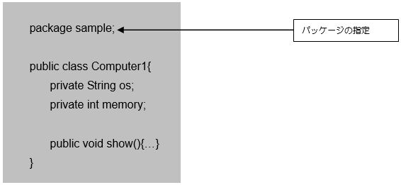 パッケージ名を指定すると、クラスがそのパッケージ内に含まれたことになります。