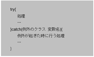 以下に例外処理の基本的な構文を示します。