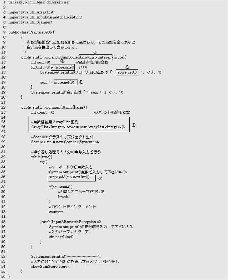 ② ArrayList配列に入力点数を格納する為に、addメソッドを利用して行います。