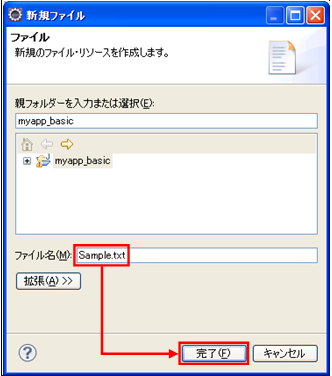 ファイル名(M):のテキストボックスに「Sample.txt」と入力 > 完了ボタンを押す