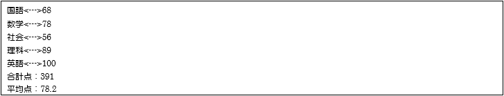 [java] out.writeln(subjectList.get(i) + "<—>" + scoreList.get(i)); out.writeln("合計点:" + sum); out.writeln("平均点:" + ave); [/java]60~62行目でFileOutクラスの「close()」メソッドを利用して書き込みファイルのクローズ処理を行っています。その際if文で判定処理を行い、closeメソッドの戻り値がfalse(クローズ失敗)の場合、System.exitメソッドを利用してプログラムの強制終了を行うようにしています。