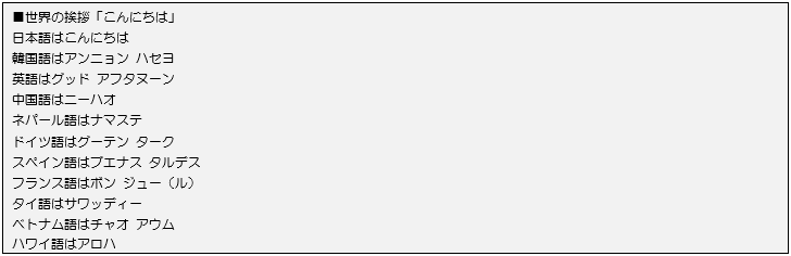 [java] String[] strArray = {"■世界の「ありがとう」", "日本語はありがとう", "韓国語はカムサハムニダ", "英語はサンキュー", "中国語はシェシェ", "ネパール語はダンニャバード", "ドイツ語はダンケ シェーン", "スペイン語はグラシァス", "フランス語はメルスィーボクー", "タイ語はコー(プ)クンマーグ", "ベトナム語はカム オンアウム", "ハワイ語はマハロ"}; [/java]25、26行目では前項で学習した方法で、ファイル名「output2.txt」の書き込みファイルをオープンしています。