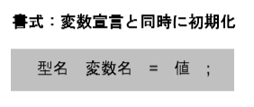 変数を宣言したときに、同時に変数に値を代入することを、「変数の初期化」と言います。
