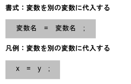 この凡例は、変数 y の値を変数 x に代入していることを示しています。