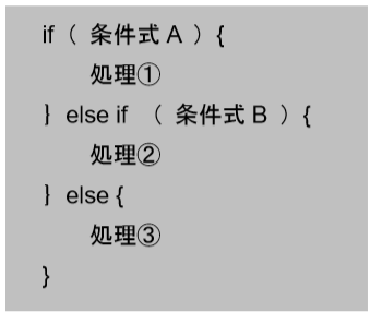 if-else if(エルスイフ)-else 文の基本構文は下記のようになります。