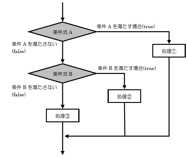 図 6.4.6 : if 文と複数条件式(if – else if ・・・ else)を両方使った記述のフローチャート
