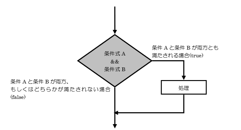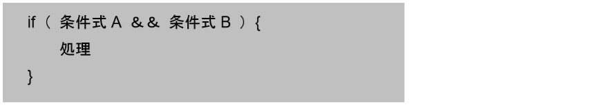 この場合は、もし条件式 A が合っていて、かつ、条件式 B が合っていたら処理を行う、ということになります。
