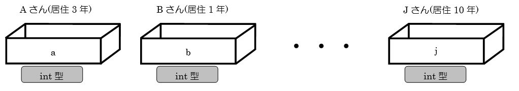 あるマンションの10部屋の住人の居住年数を管理することとします。