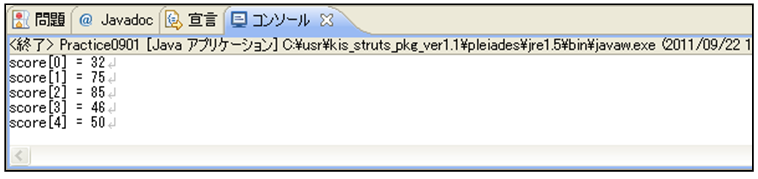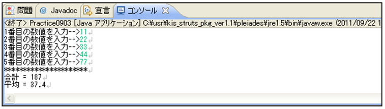 問6 次の実行結果になるソースコードPractice0903.javaを作成仕様に基づき作成しなさい。