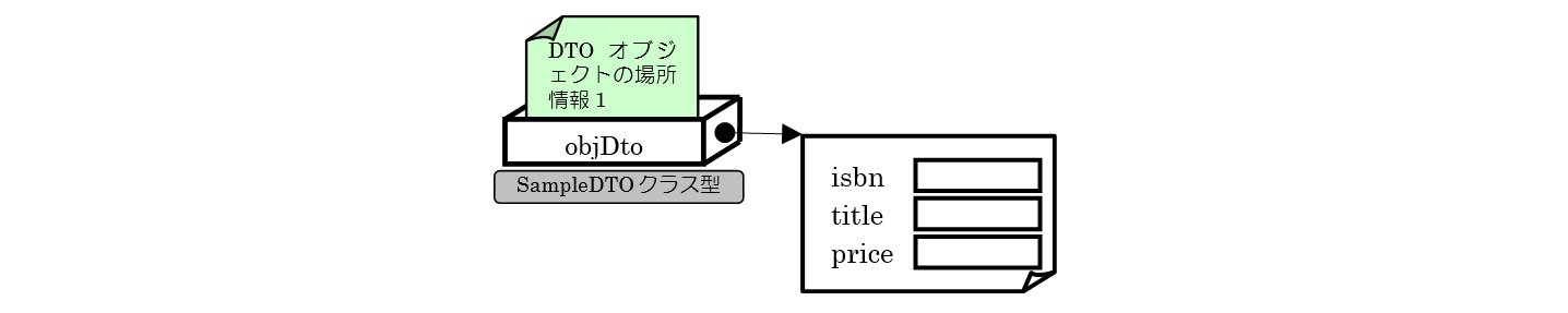 図の①でDTOオブジェクトの場所情報をコピーしています。その結果、②のように同じオブジェクトを参照するようになります。