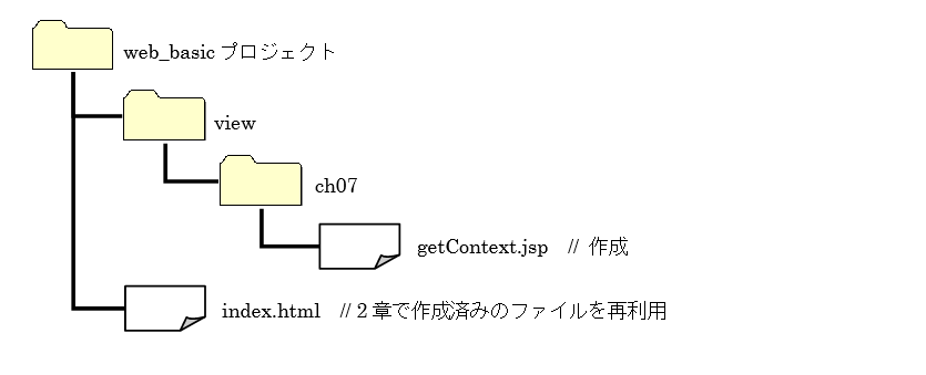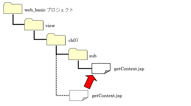③ アクセスURL :http://localhost:8080/web_basic/view/ch07/getContext.jsp