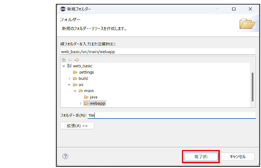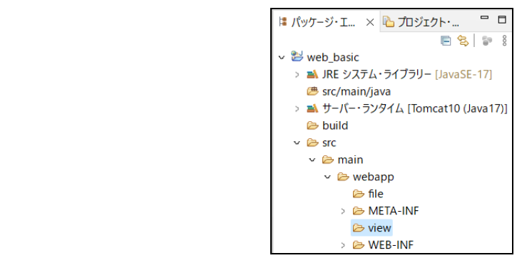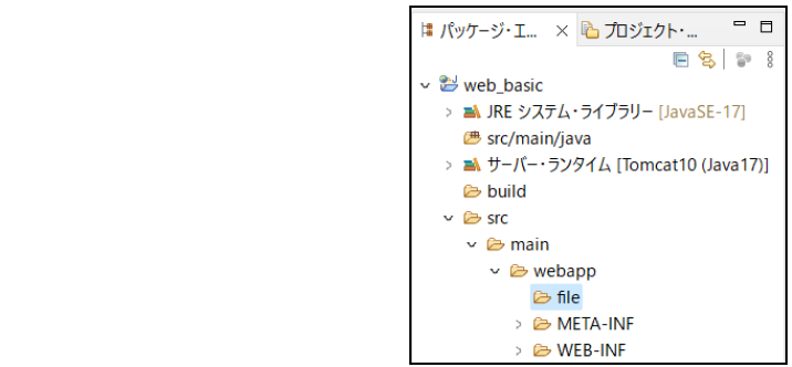 パッケージ・エクスプローラー内のwebappプロジェクトの直下に「file」フォルダが作成されます。