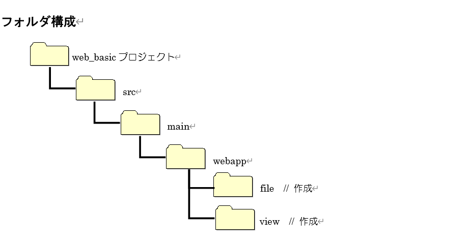 Eclipseを利用して作成した動的Webプロジェクトには、複数のファイルやフォルダが自動で生成されます。「web_basic」プロジェクトを展開し、どのようなものがあるかを確認しましょう。