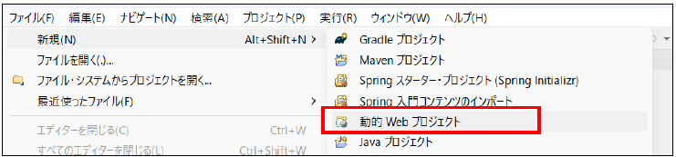 では以下の手順に沿って動的Webプロジェクトを作成していきましょう。