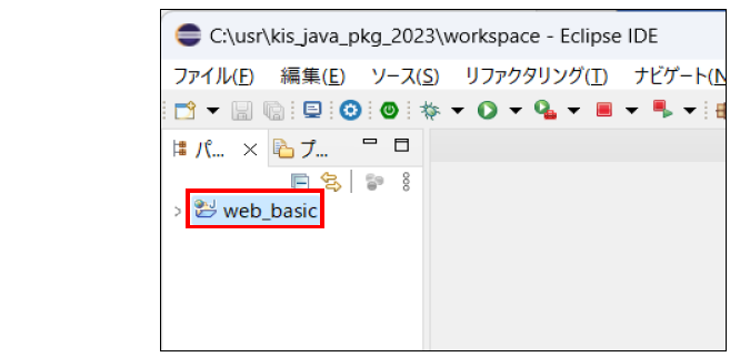パッケージ・エクスプローラー内に「web_basic」という名前のプロジェクトが作成されます。