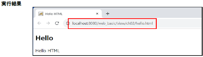 ② hello.htmlプログラムの実行