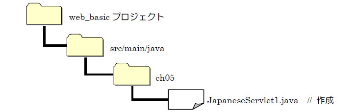 ⑤ アクセスURL :http://localhost:8080/web_basic/JapaneseServlet1