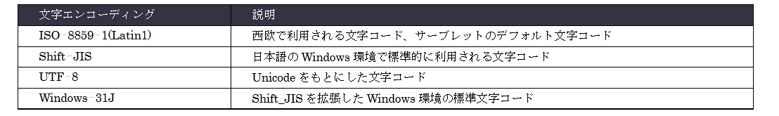 主な文字エンコーディングには以下のようなものがありますので覚えておきましょう。