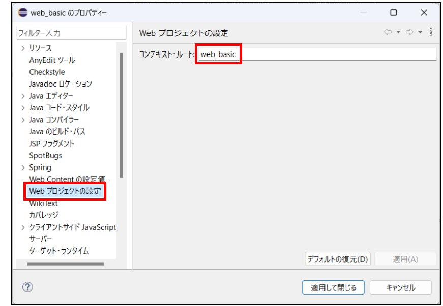 では、web_basicプロジェクトのコンテキストパスの設定を見てみましょう。