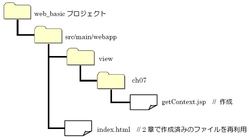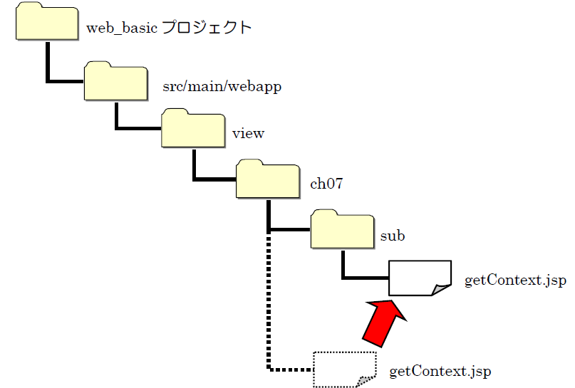 ③ アクセスURL :http://localhost:8080/web_basic/view/ch07/getContext.jsp