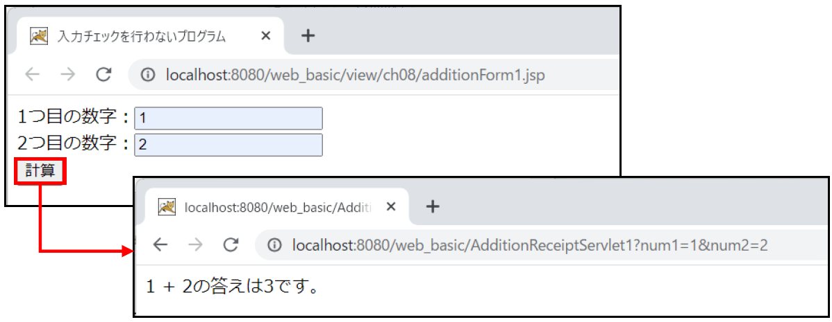 ③ アクセスURL :http://localhost:8080/web_basic/view/ch08/additionForm1.jsp