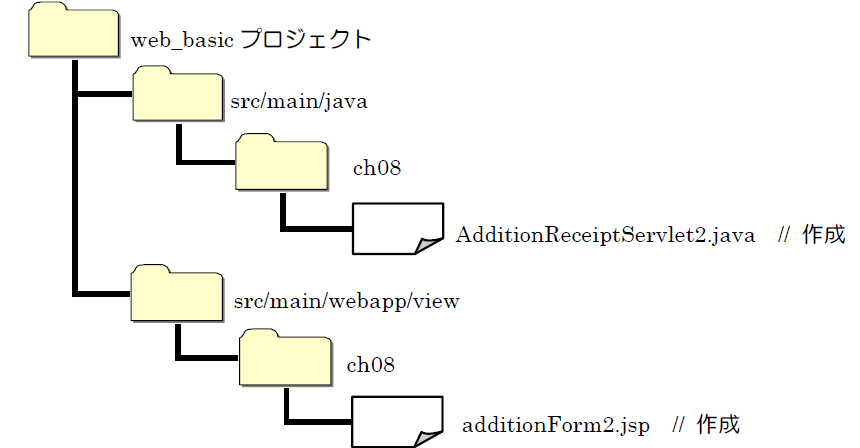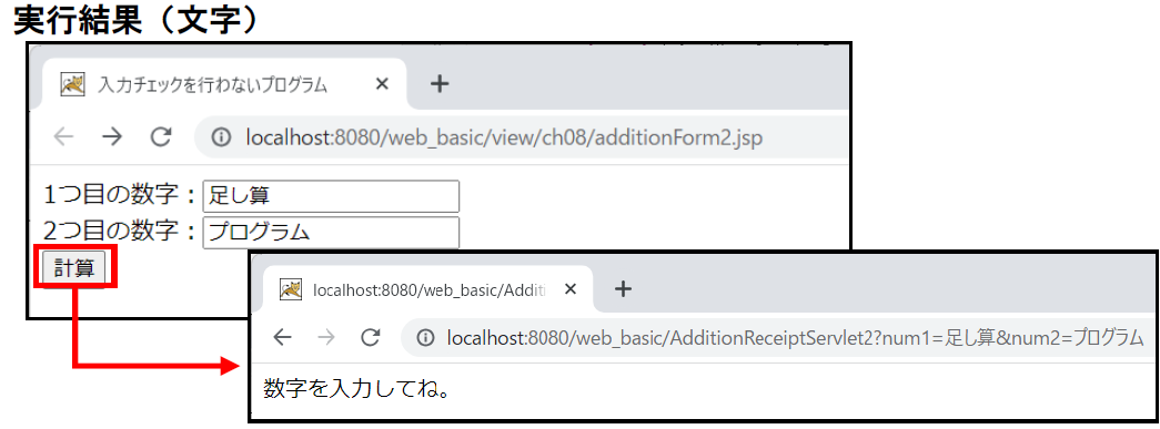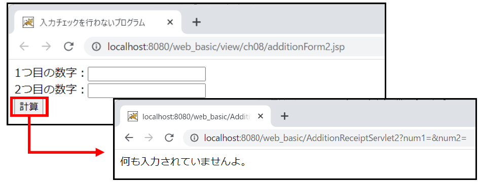 ③ アクセスURL :http://localhost:8080/web_basic/view/ch08/additionForm2.jsp