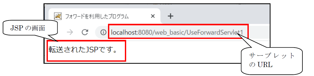 ⑤ アクセスURL :http://localhost:8080/web_basic/UseForwardServlet2