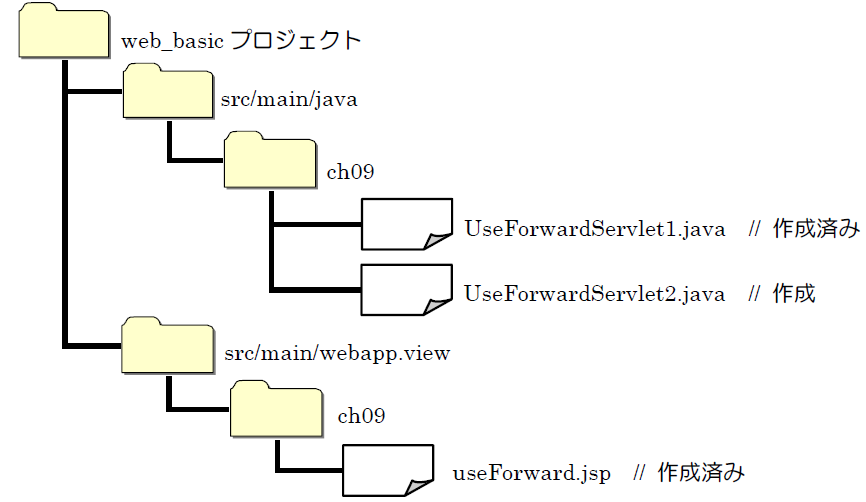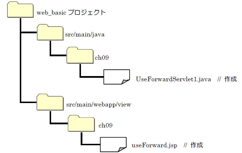 ➢ UseForwardServlet1.java① ソース・フォルダ :web_basic/src/main/java