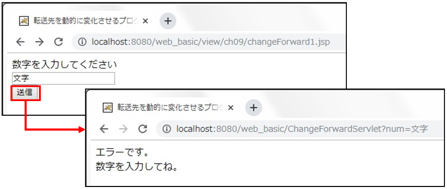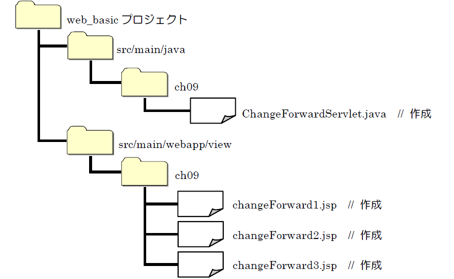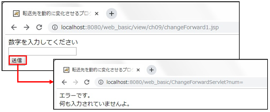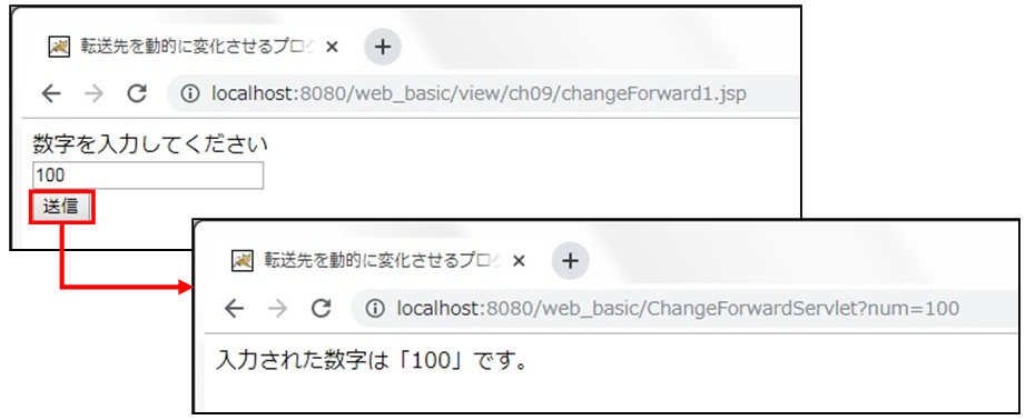 ③ アクセスURL :http://localhost:8080/web_basic/view/ch09/changeForward1.jsp