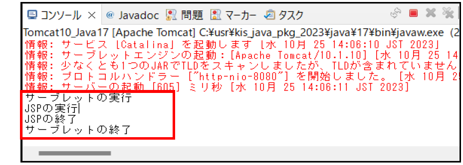 ④ 「JSPの実行」がコンソールに出力されます。