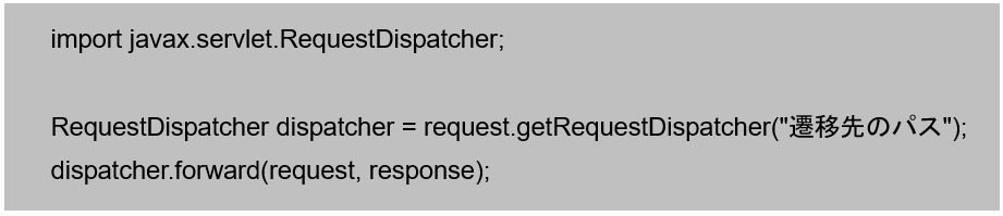 request.getRequestDispatcher(“遷移先のパス”).forward(request, response);