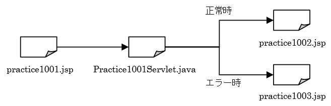 ⑤ アクセスURL :practice1001.jspからの画面遷移でアクセスされる