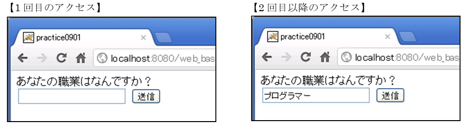 ③ アクセスURL :http://localhost:8080/web_basic/view/ch10exercise/practice1001.jsp