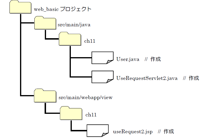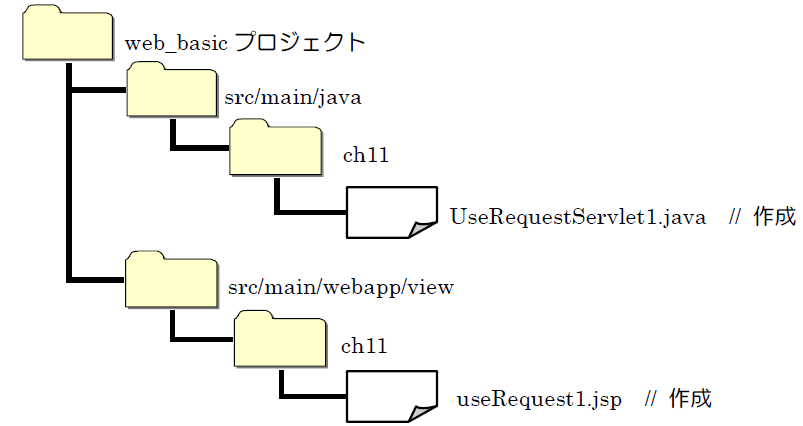 ➢ useRequest2.jsp① 親フォルダの入力または選択 :web_basic/src/main/webapp/view/ch11