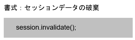 Sessionオブジェクトのinvalidate()メソッドを利用することで、セッションを破棄することができます。