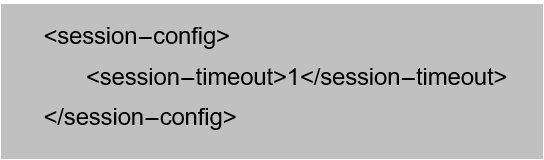 [html]  <web-app> <session-config> <session-timeout>1</session-timeout> </session-config>  </web-app>  [/html]