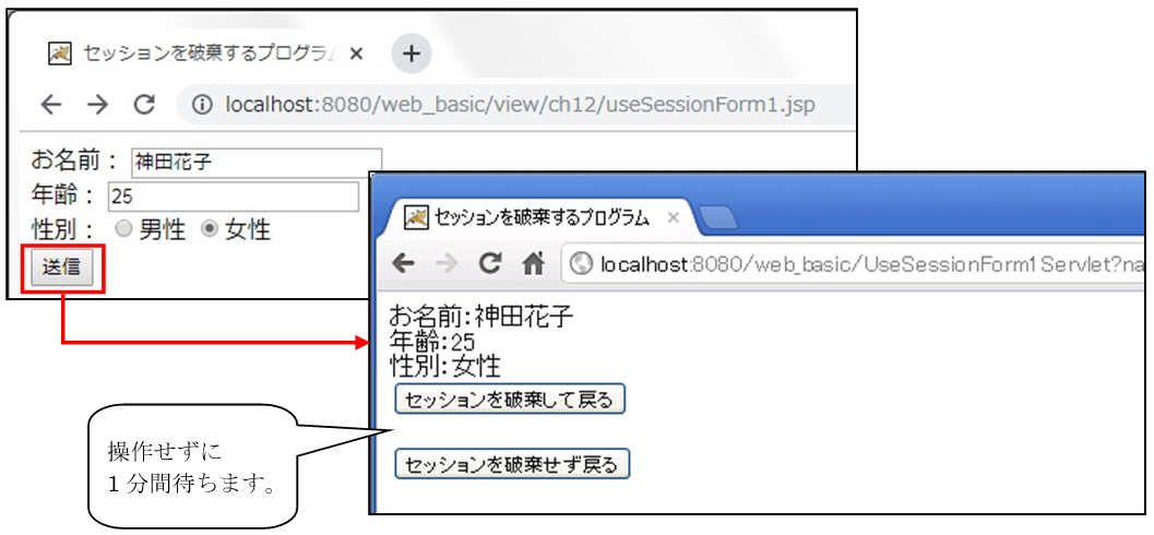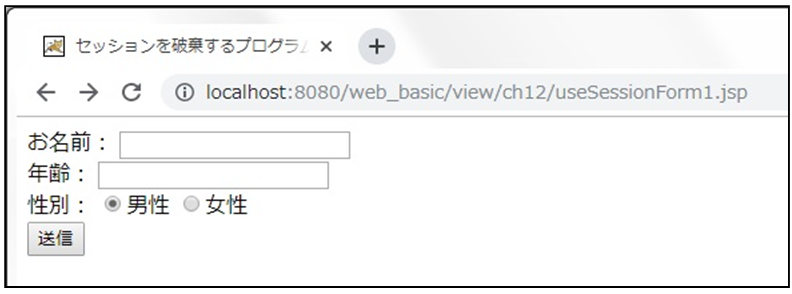 ③ アクセスURL :http://localhost:8080/web_basic/view/ch12/useSessionForm1.jsp
