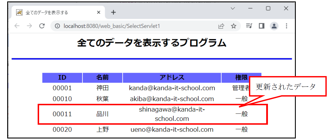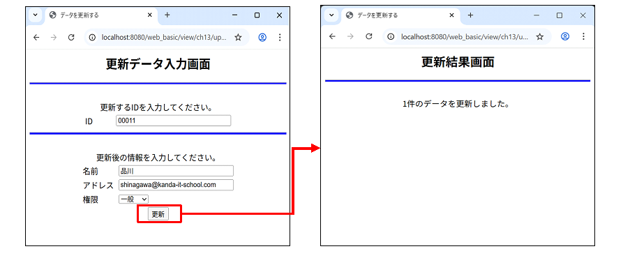 ③ アクセスURL :http://localhost:8080/web_basic/view/ch13/updateForm.jsp