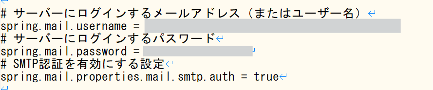 また、spring.mail.properties.mail.smtp.authをtrueにすることで、ログイン情報をSMTPサーバーに送信しています。