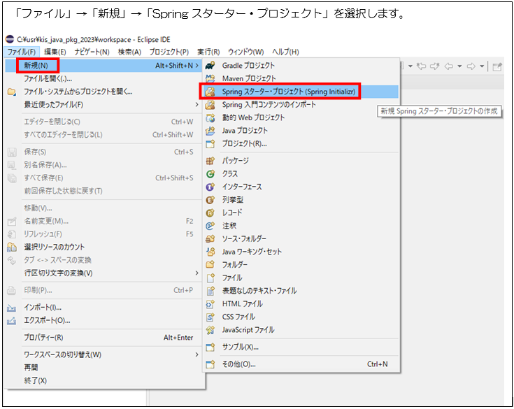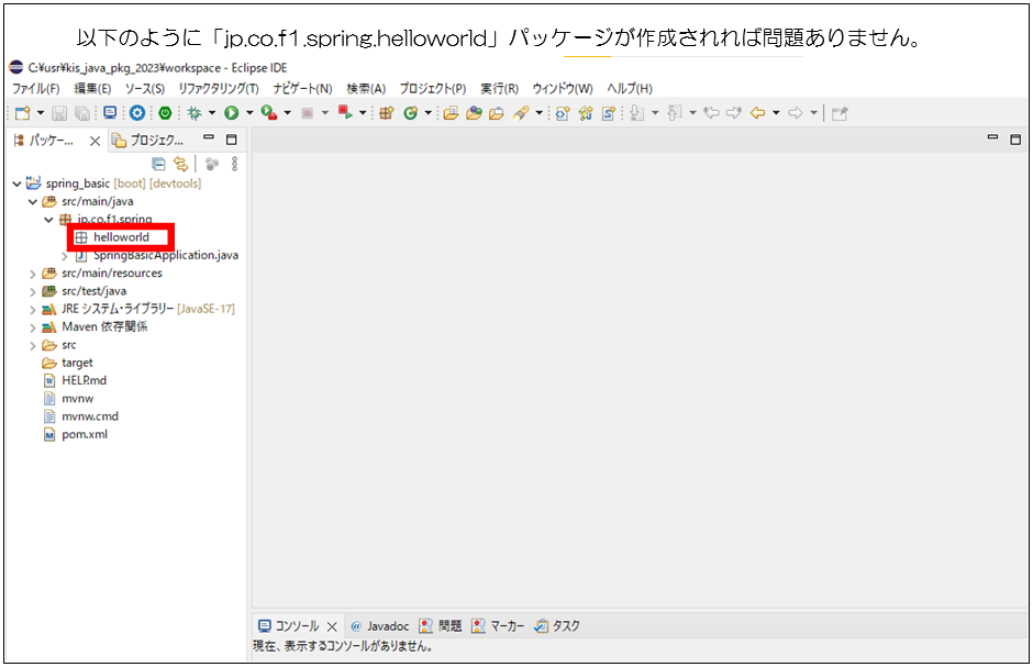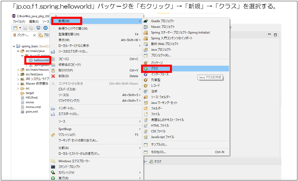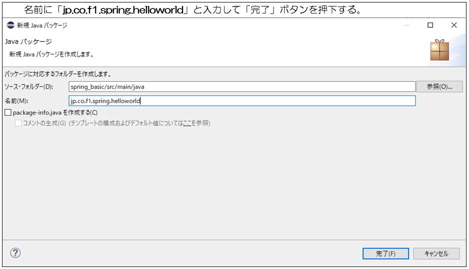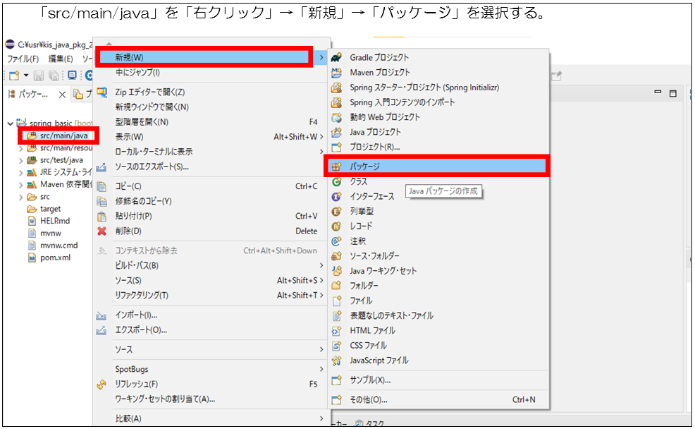Springスタータープロジェクト・パッケージ・フォルダー作成を行う。