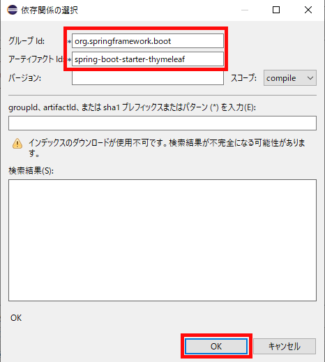 図 5.4 3:グループId(Group Id)とアーティファクトId(Artifact Id)を記入し、OKする。