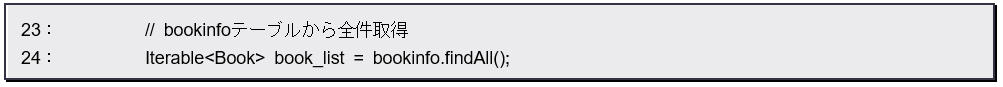 BookRepositoryには、findAllなんてメソッドは定義されていませんでしたね。これは、継承元であるJpaRepositoryに用意されているメソッドです。これにより、エンティティがすべて自動的に取り出されたのです。