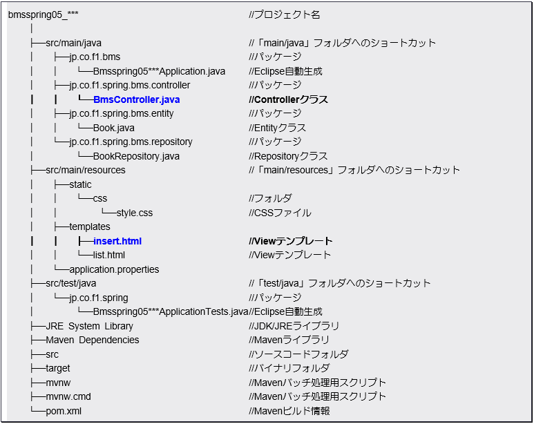 2 簡易書籍登録アプリケーション(JPA版)プロジェクト構成(完成状態)